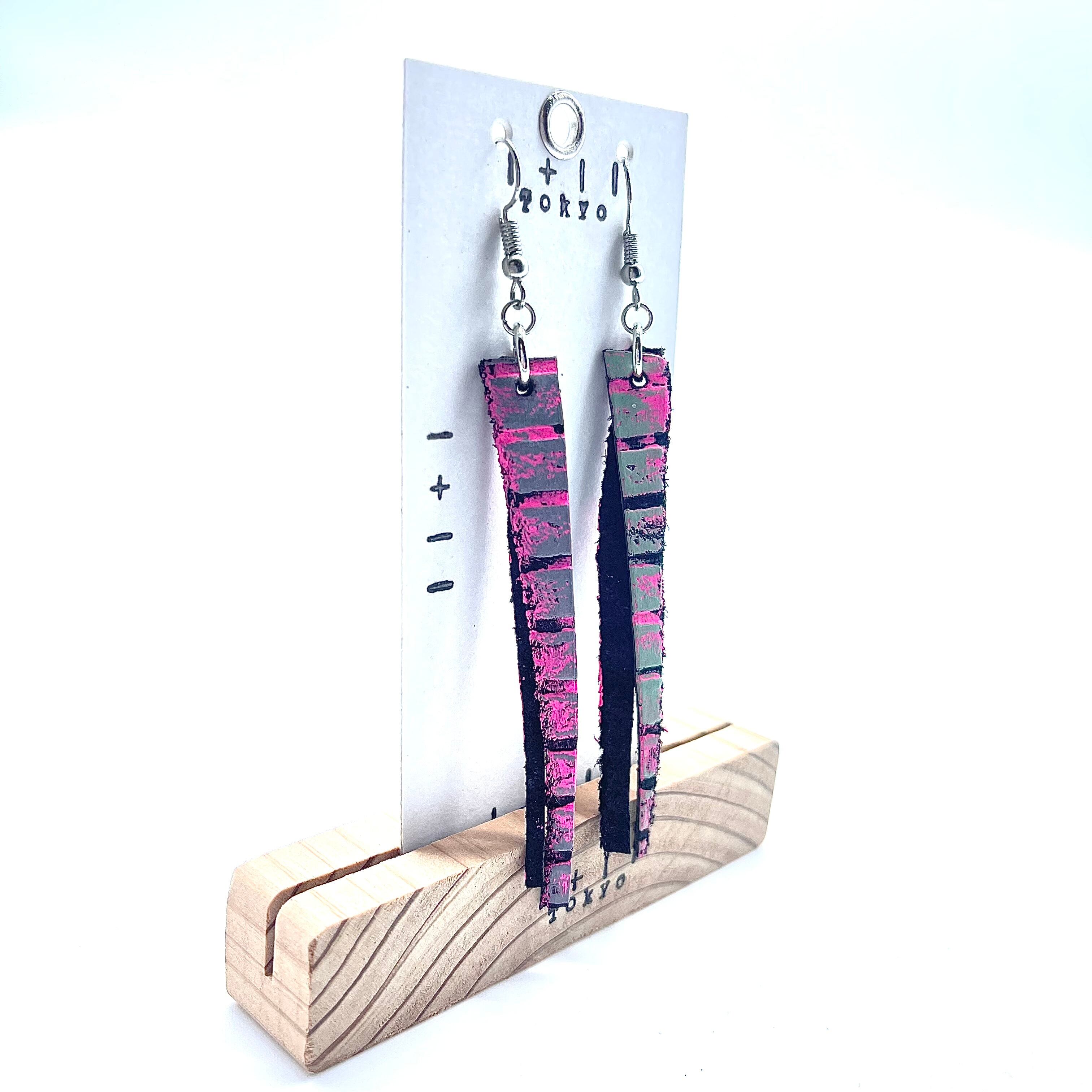 抽象画を革に描いた時の小さい部分を ピアスとして作っています
