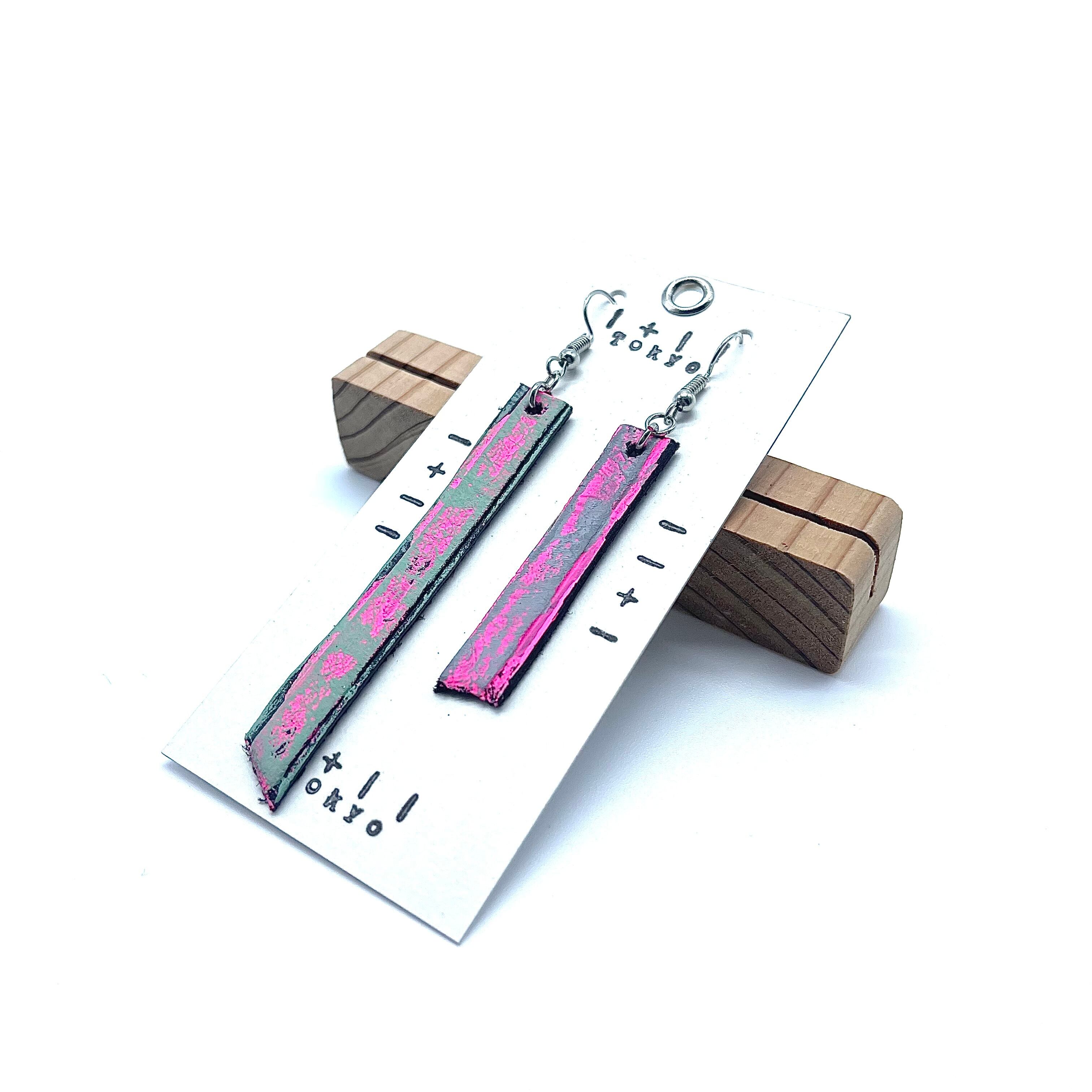 抽象画を革に描いた時の小さい部分を ピアスとして作っています