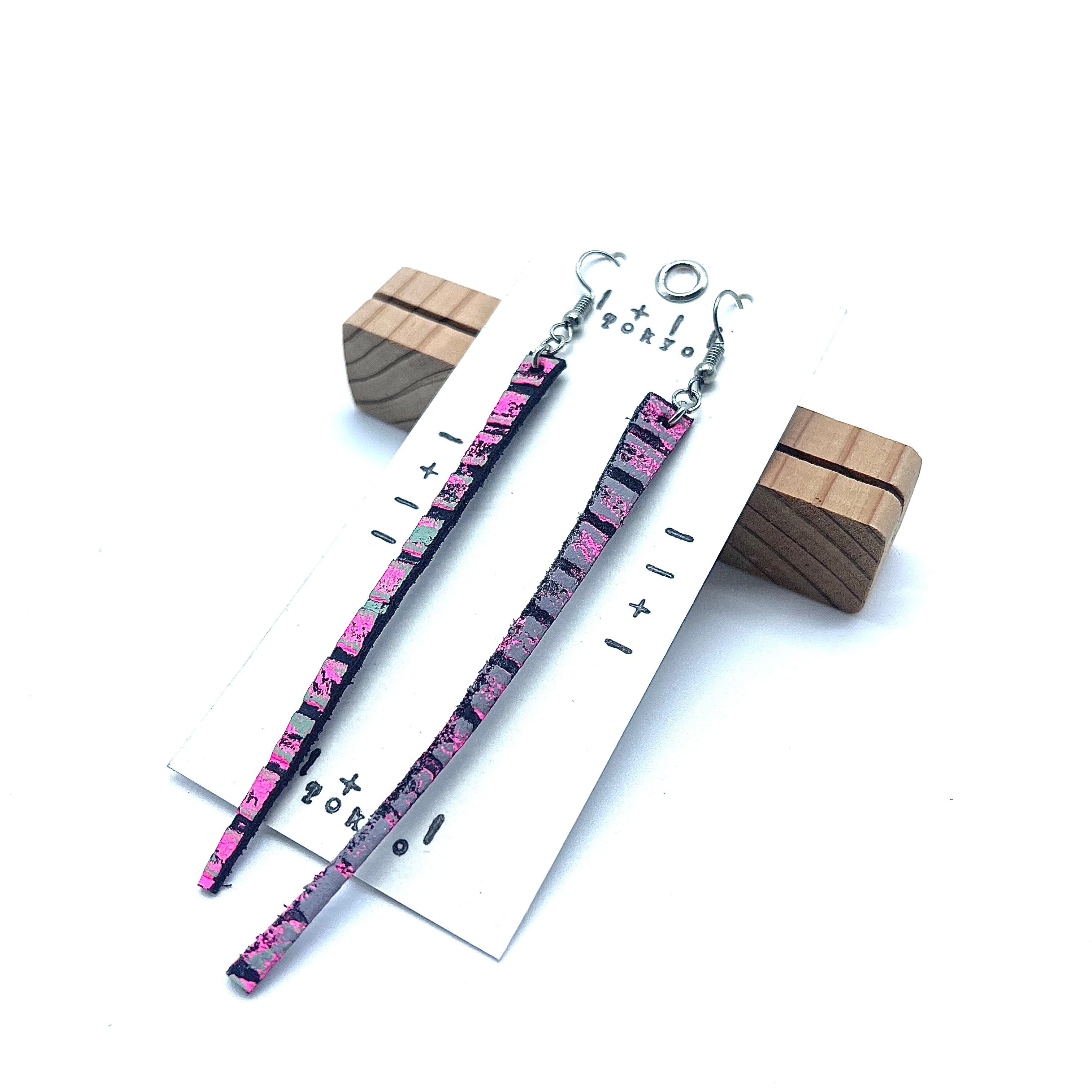 抽象画を革に描いた時の小さい部分を ピアスとして作っています