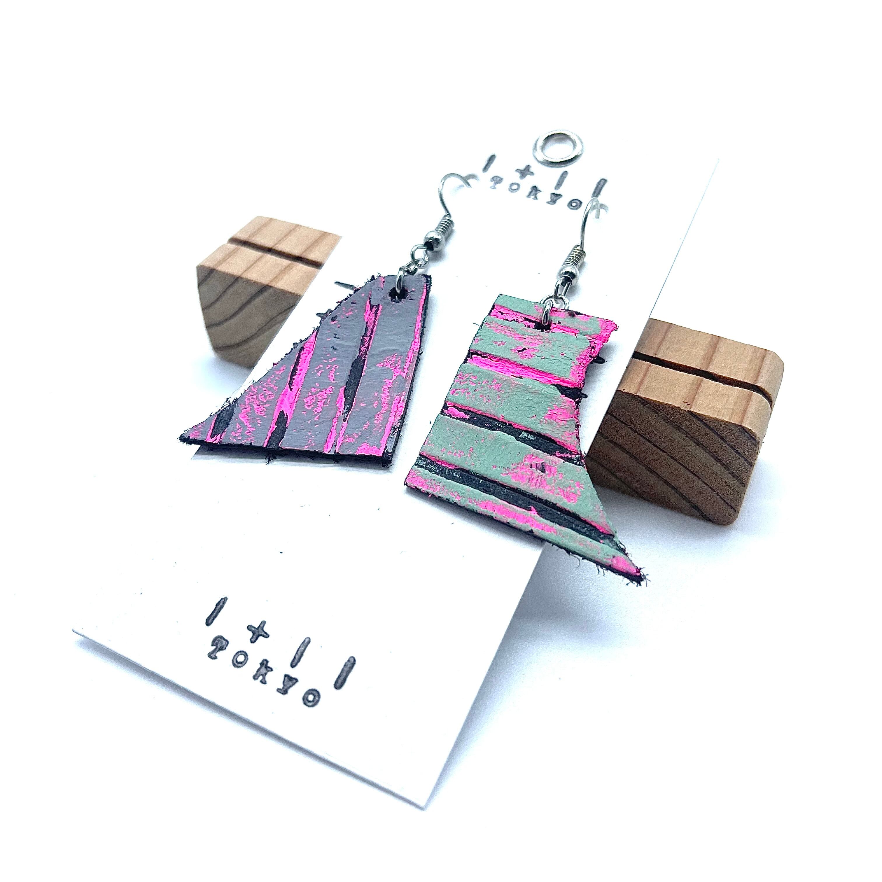 抽象画を革に描いた時の小さい部分を ピアスとして作っています