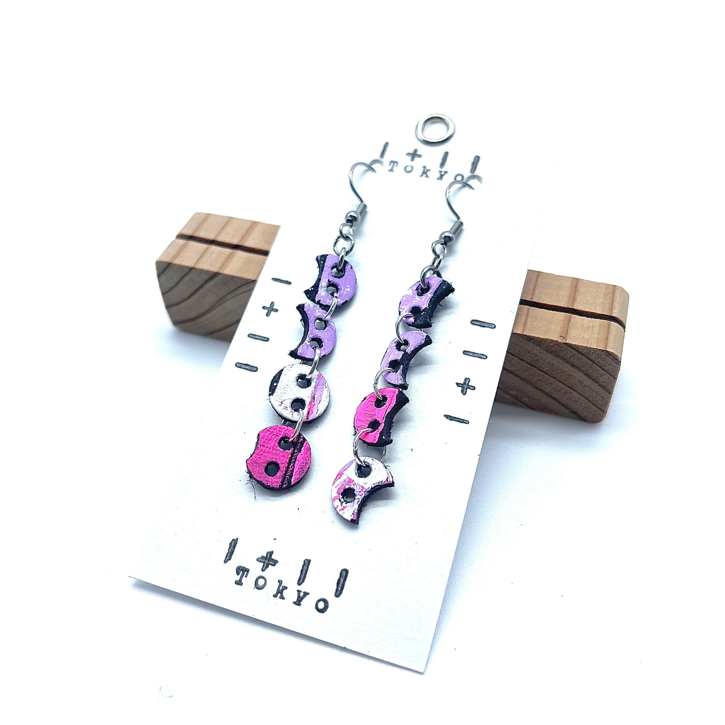 抽象画を革に描いた時の小さい部分を ピアスとして作っています
