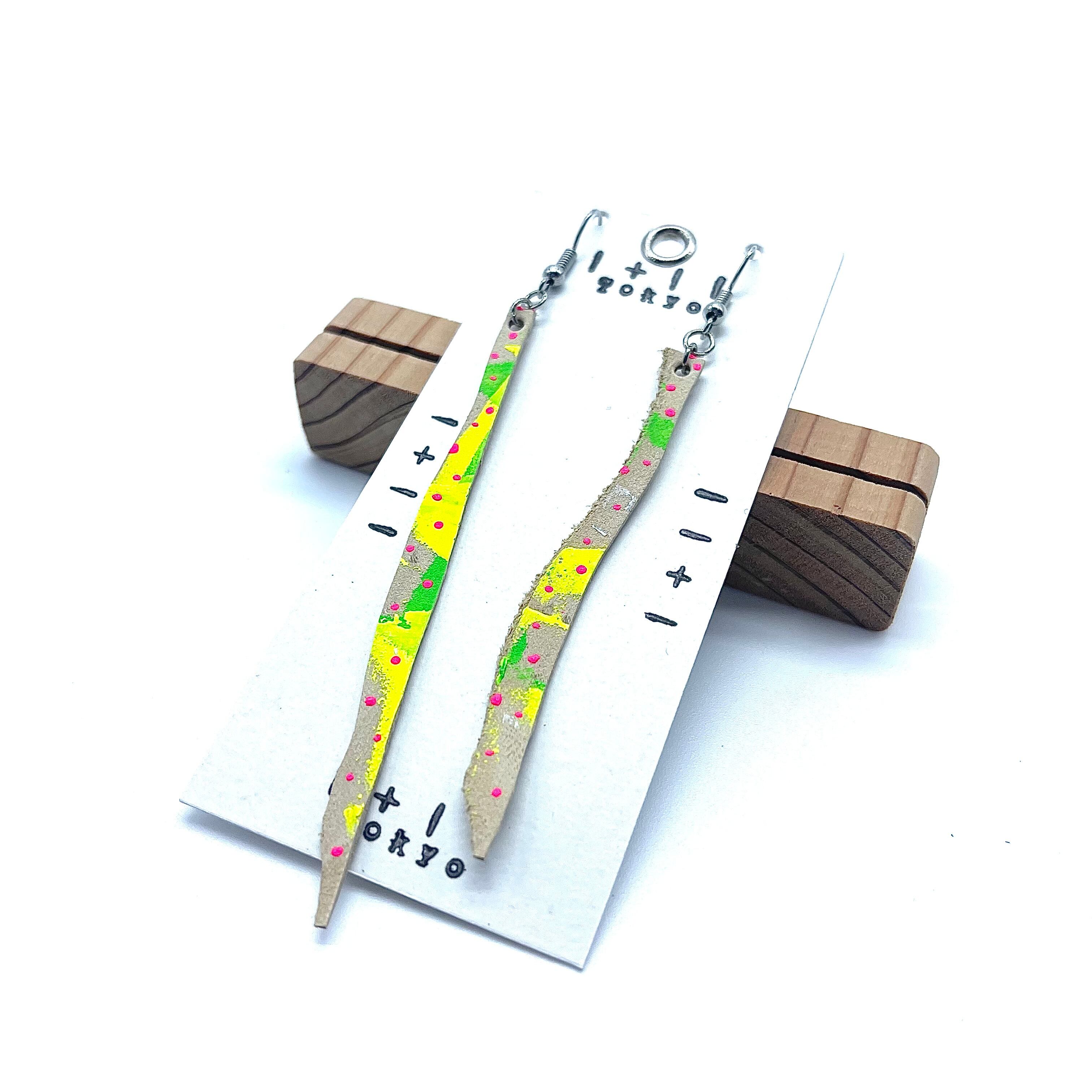 抽象画を革に描いた時の小さい部分を ピアスとして作っています