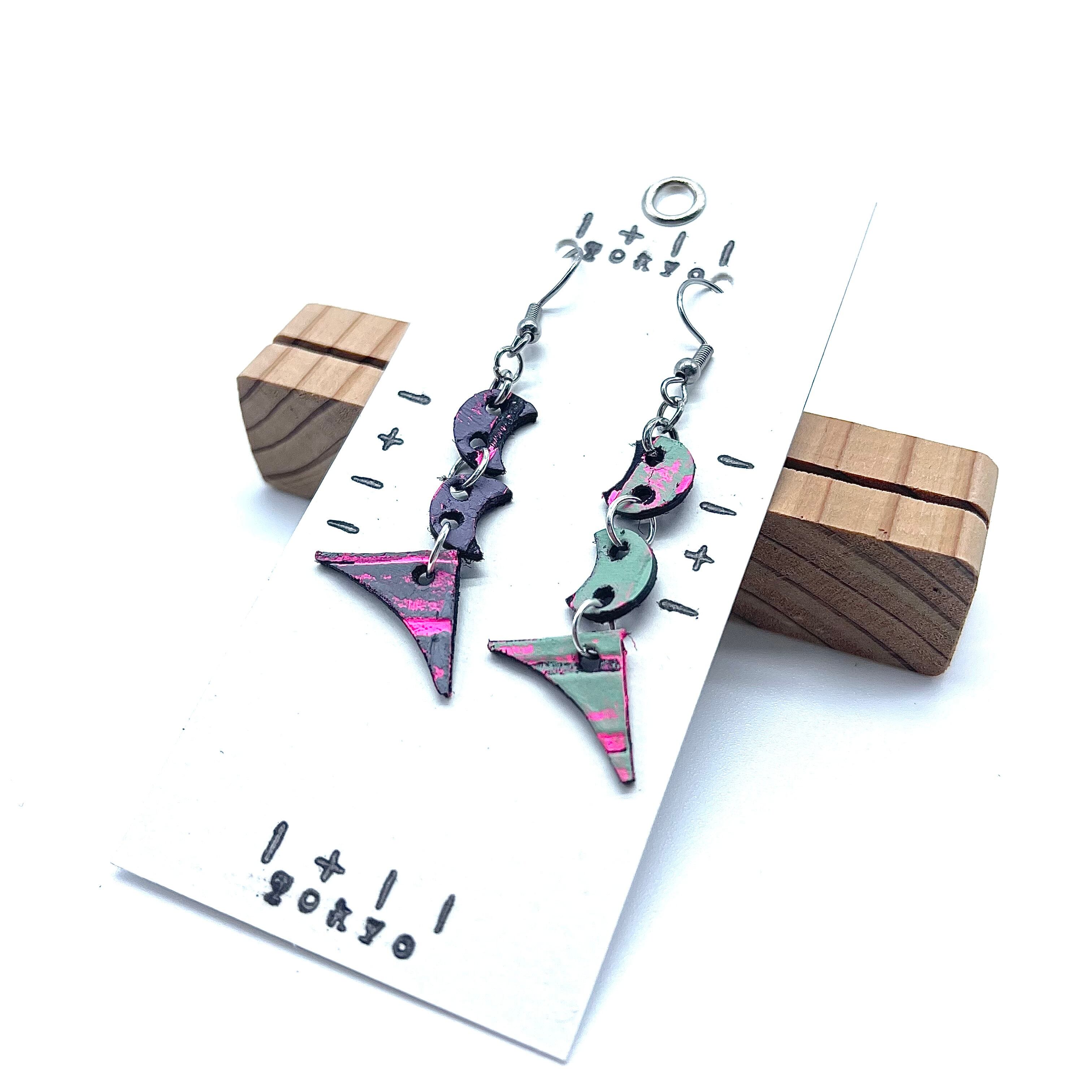 抽象画を革に描いた時の小さい部分を ピアスとして作っています