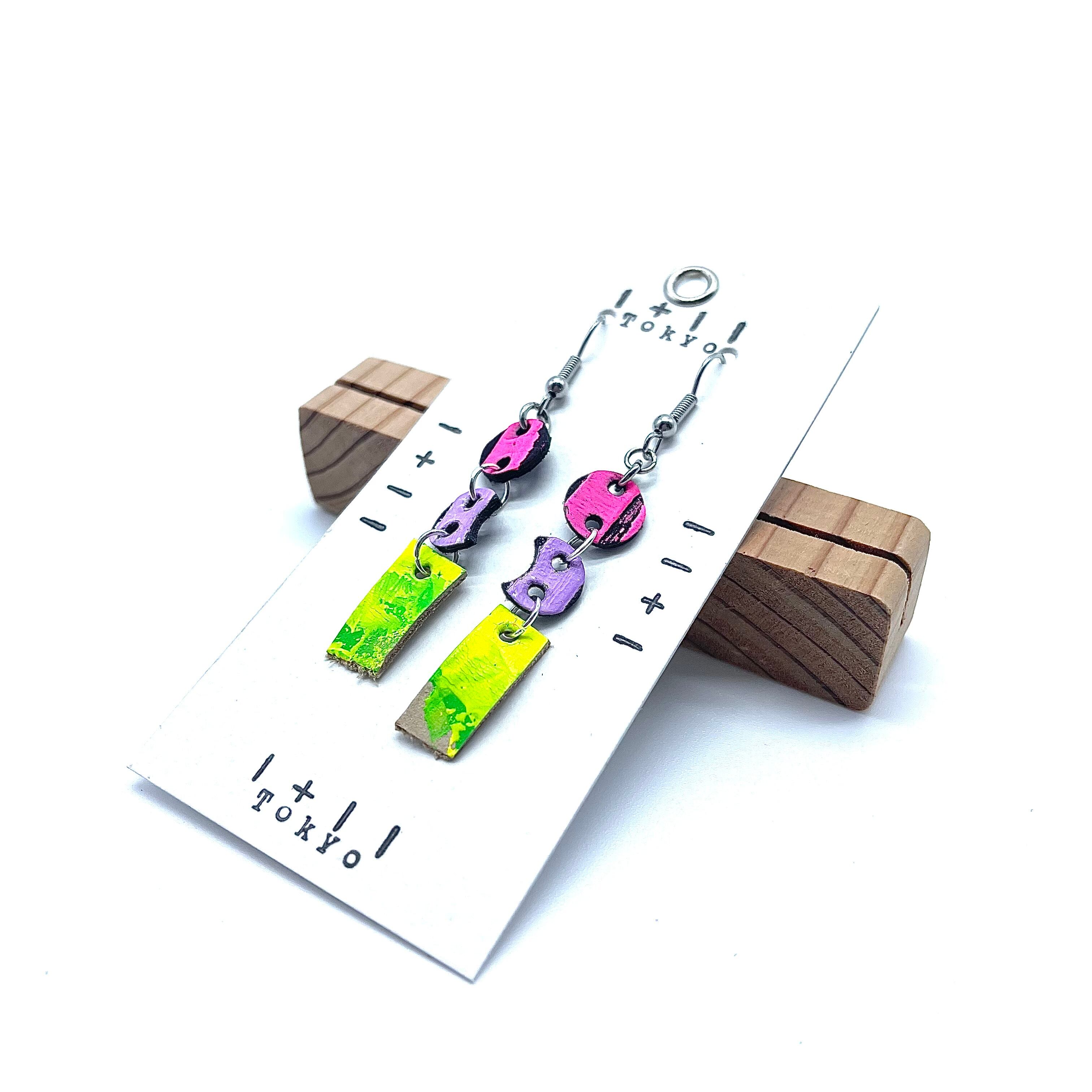 抽象画を革に描いた時の小さい部分を ピアスとして作っています