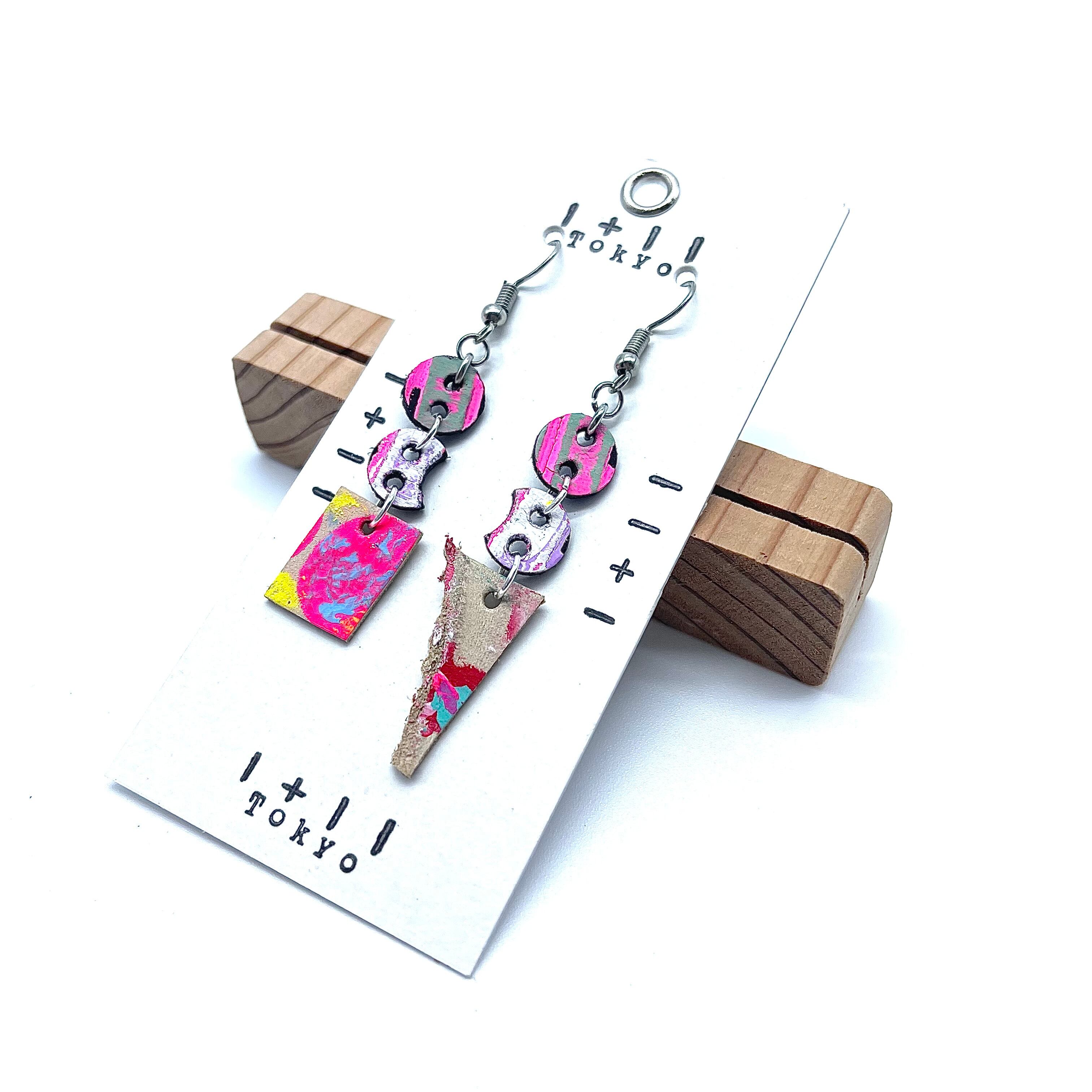 抽象画を革に描いた時の小さい部分を ピアスとして作っています