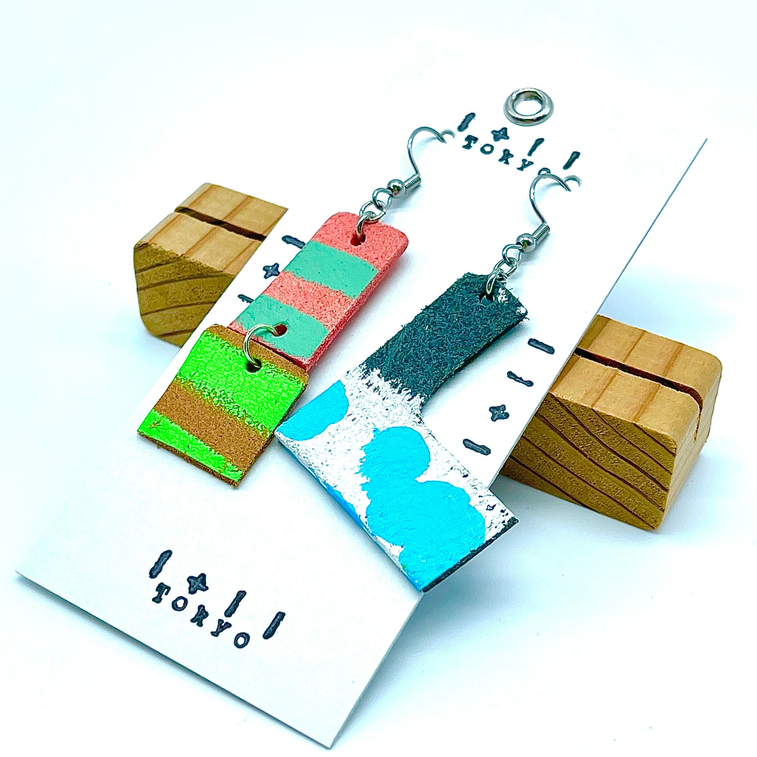 抽象画を革に描いた時の小さい部分を ピアスとして作っています