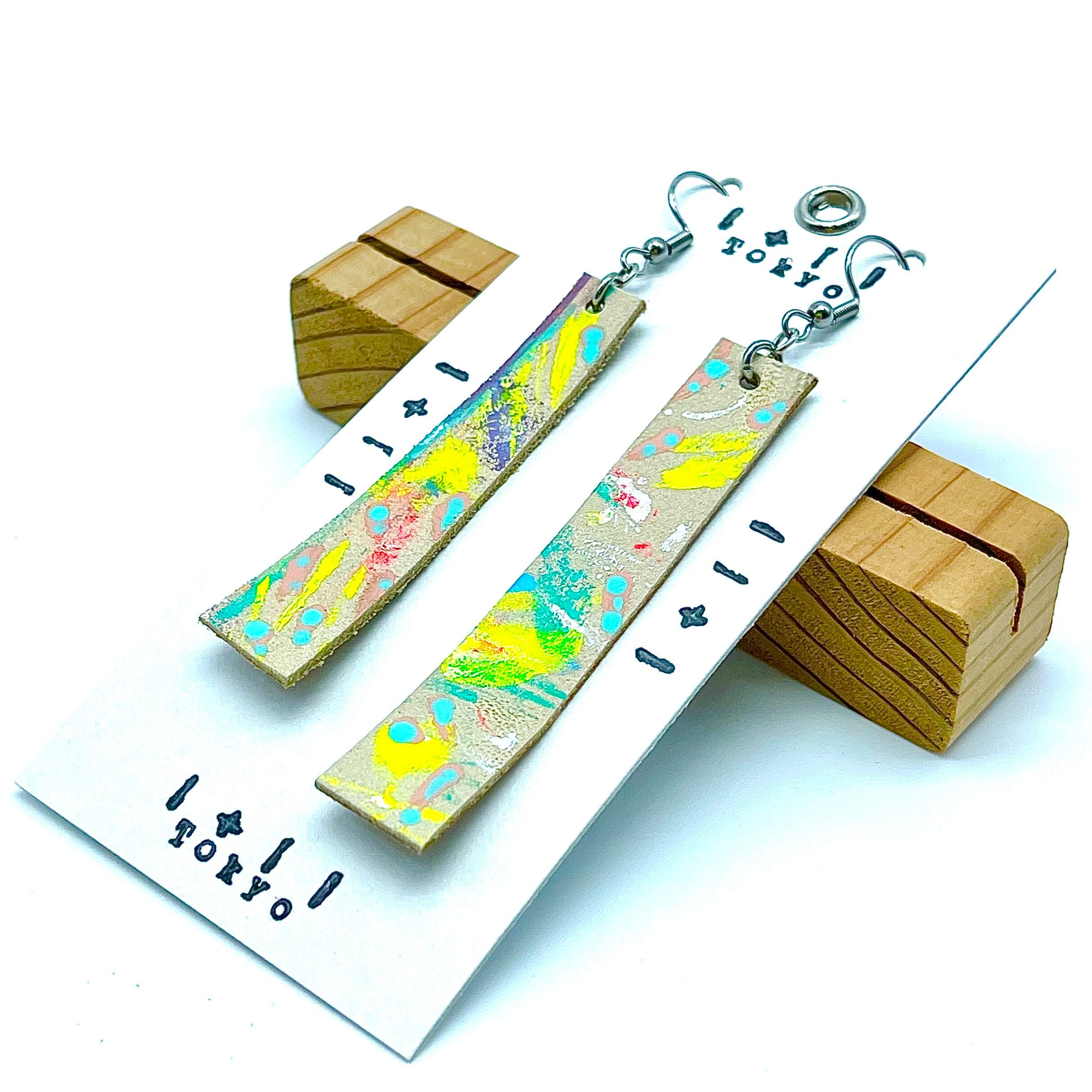抽象画を革に描いた時の小さい部分を ピアスとして作っています