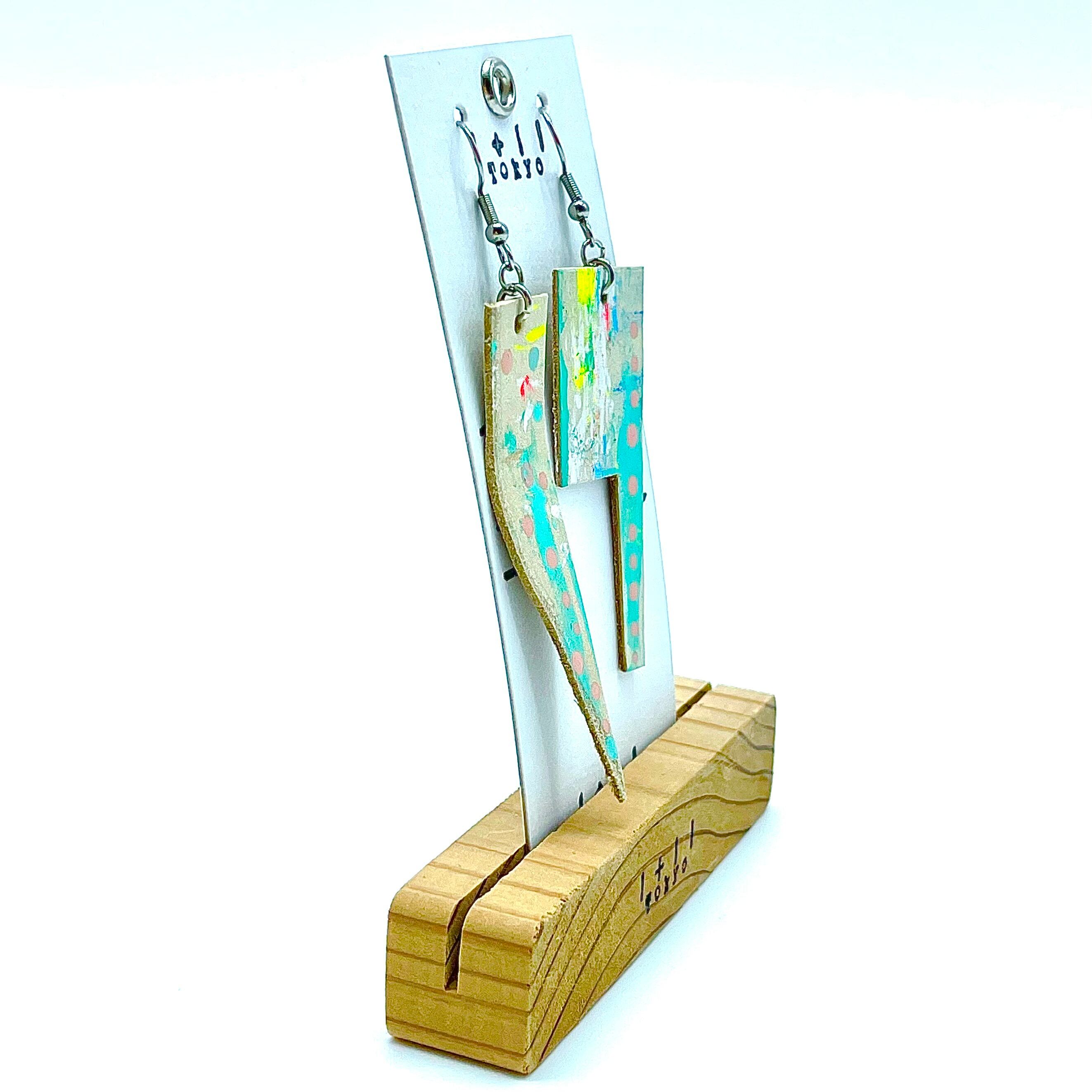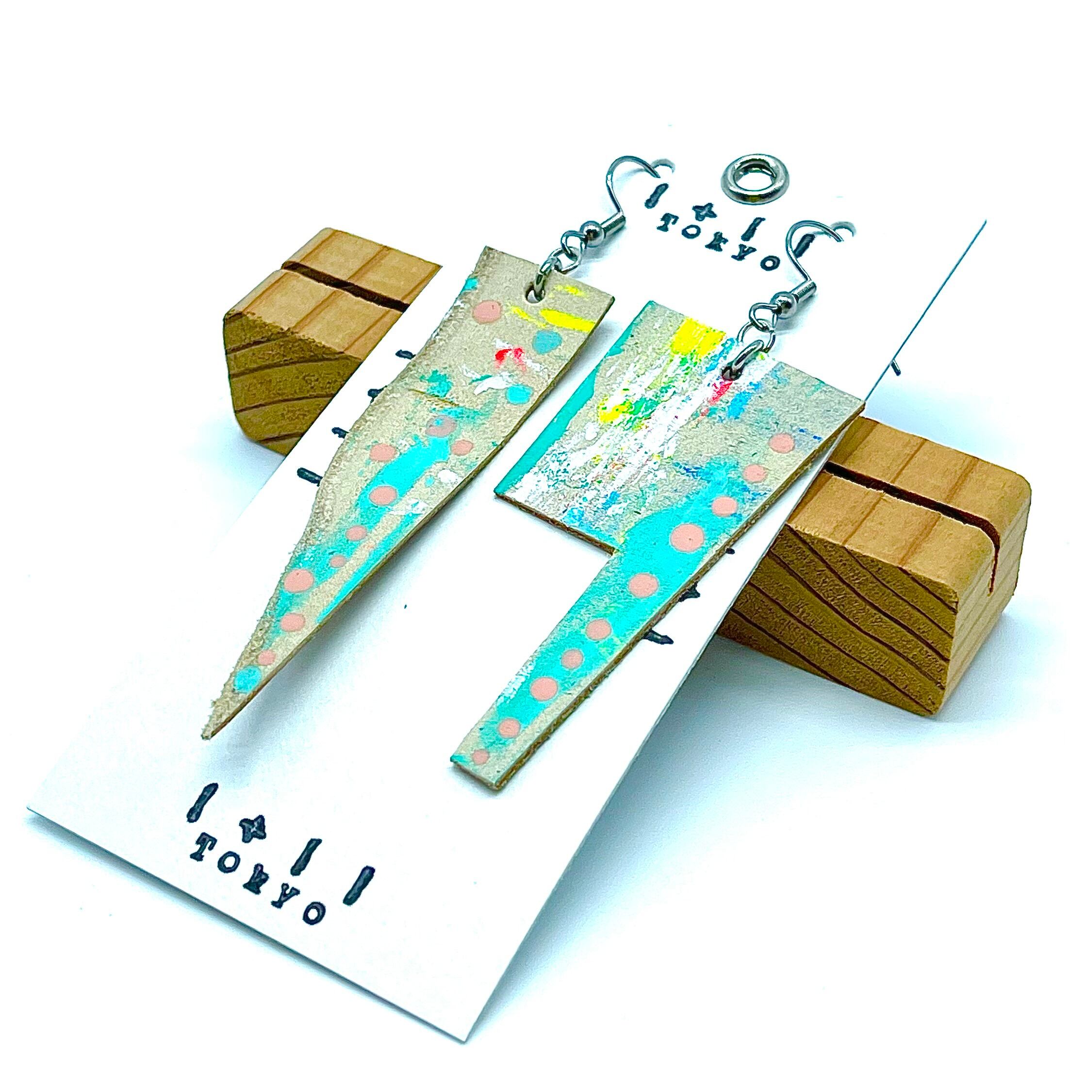 抽象画を革に描いた時の小さい部分を ピアスとして作っています