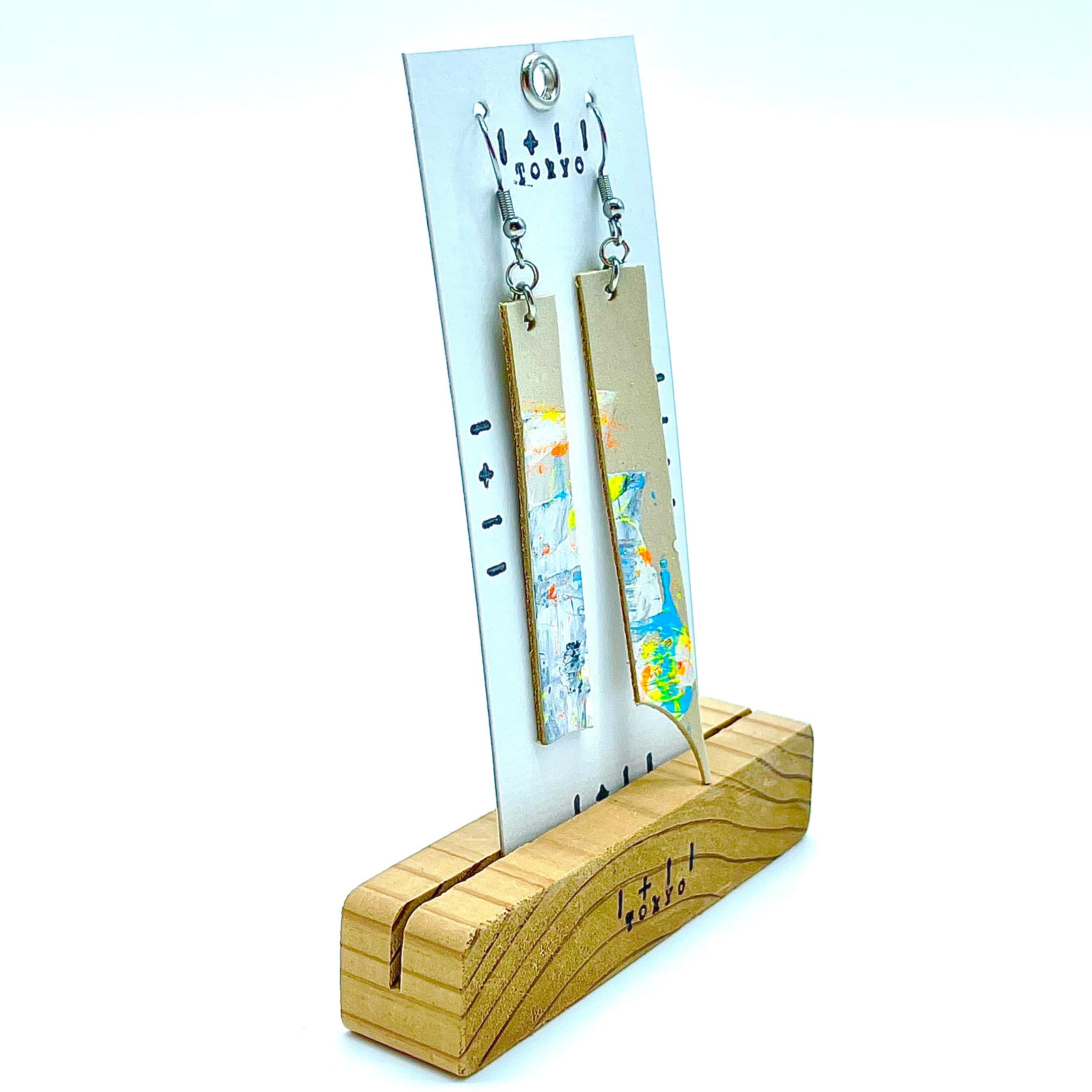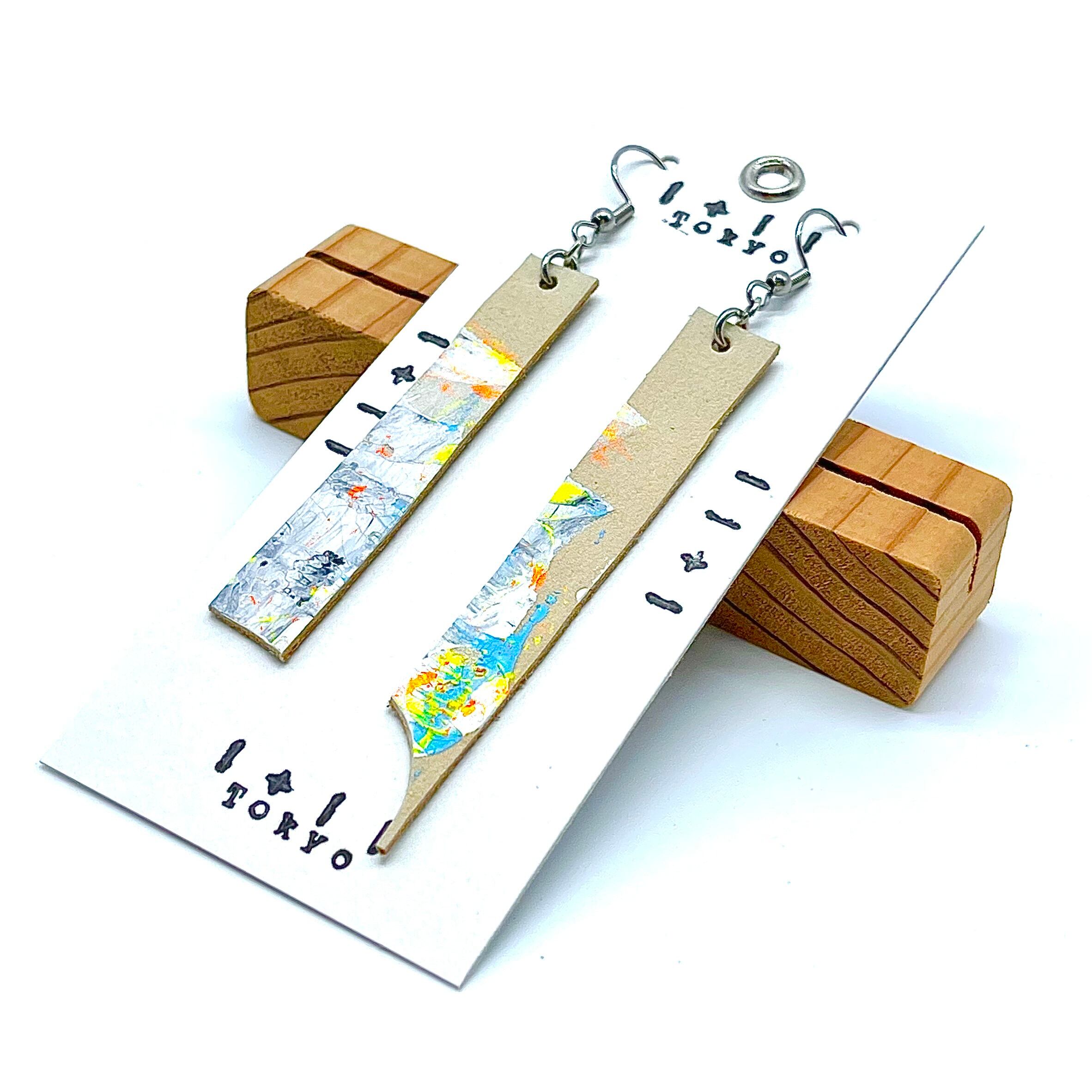 抽象画を革に描いた時の小さい部分を ピアスとして作っています