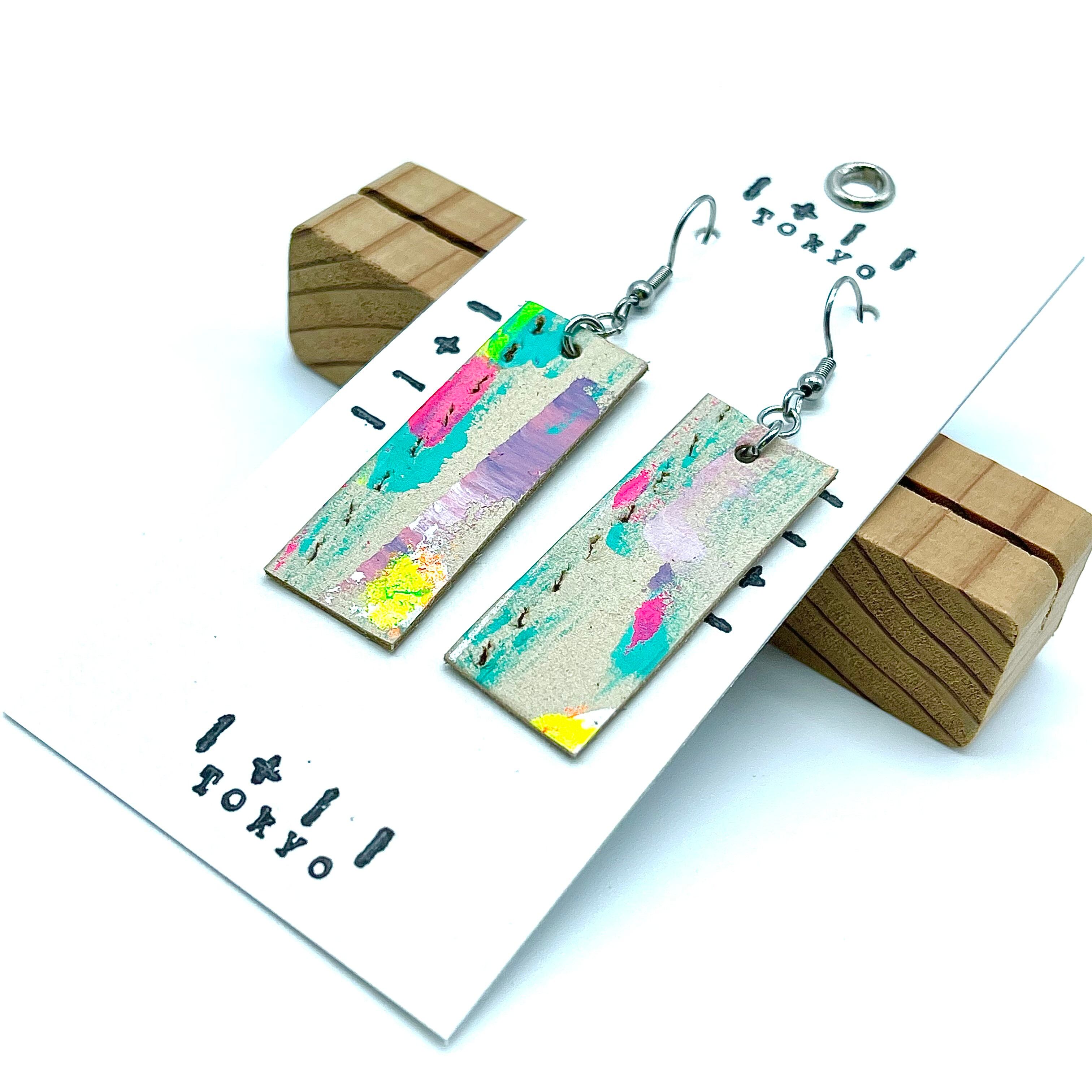 抽象画を革に描いた時の小さい部分を ピアスとして作っています