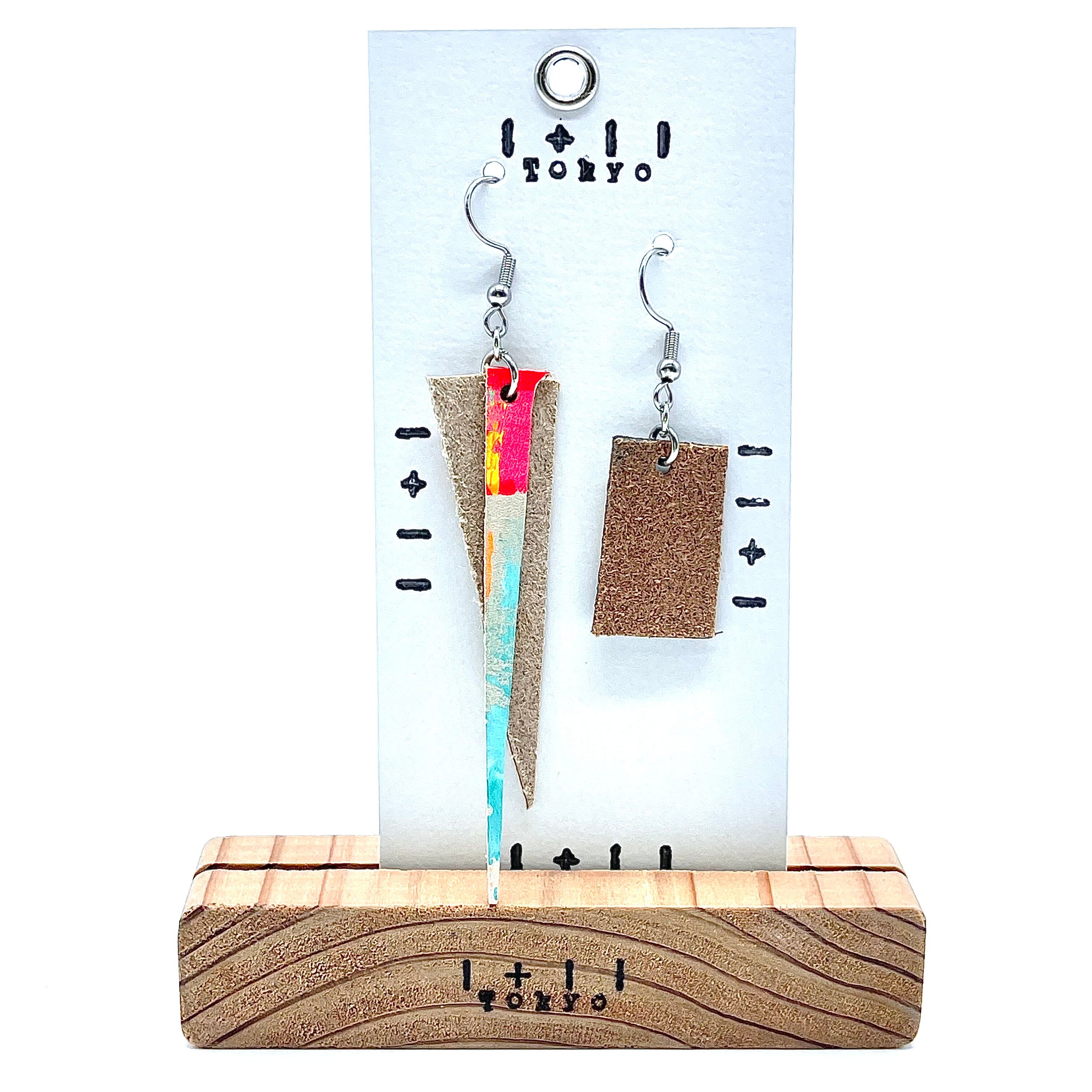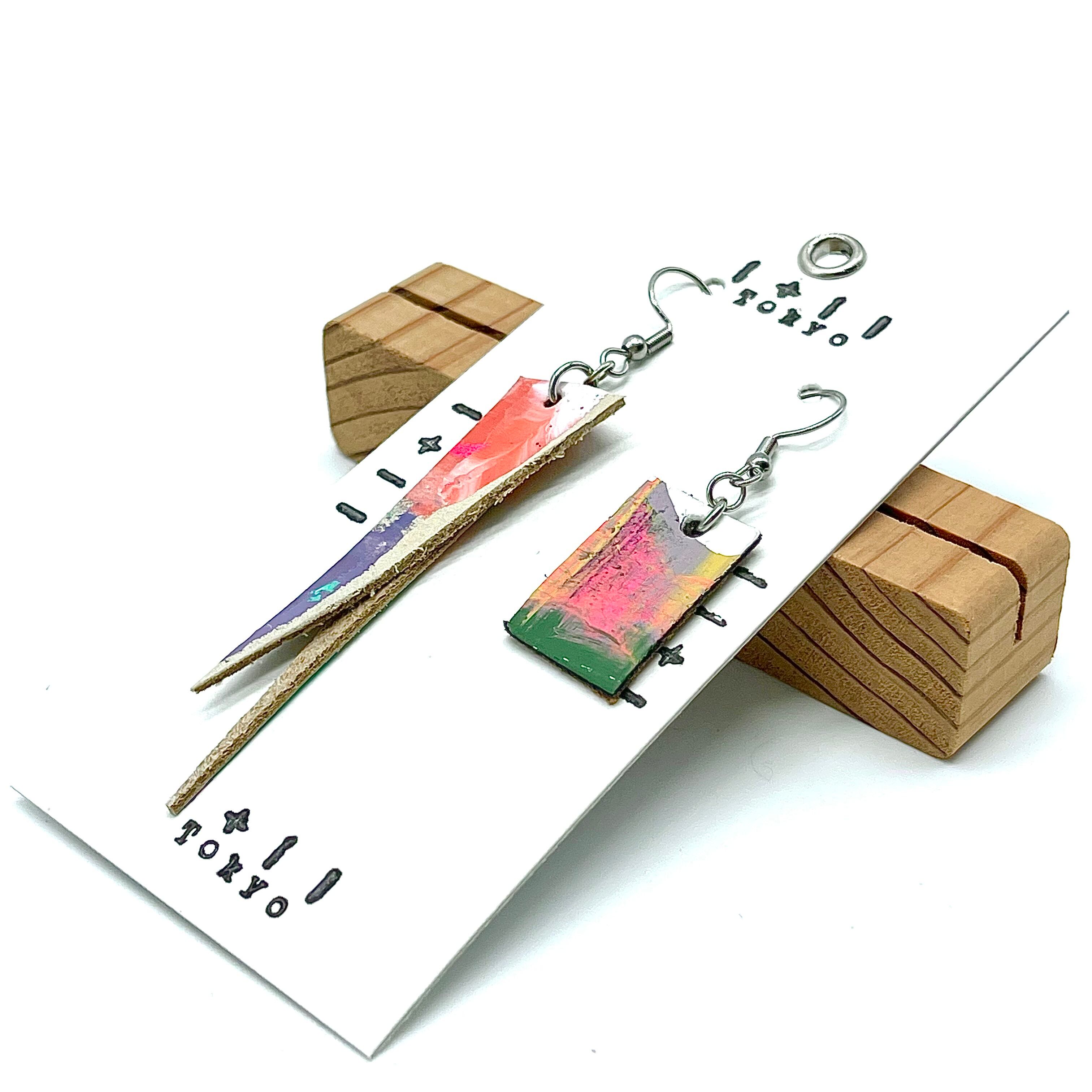 抽象画を革に描いた時の小さい部分を ピアスとして作っています