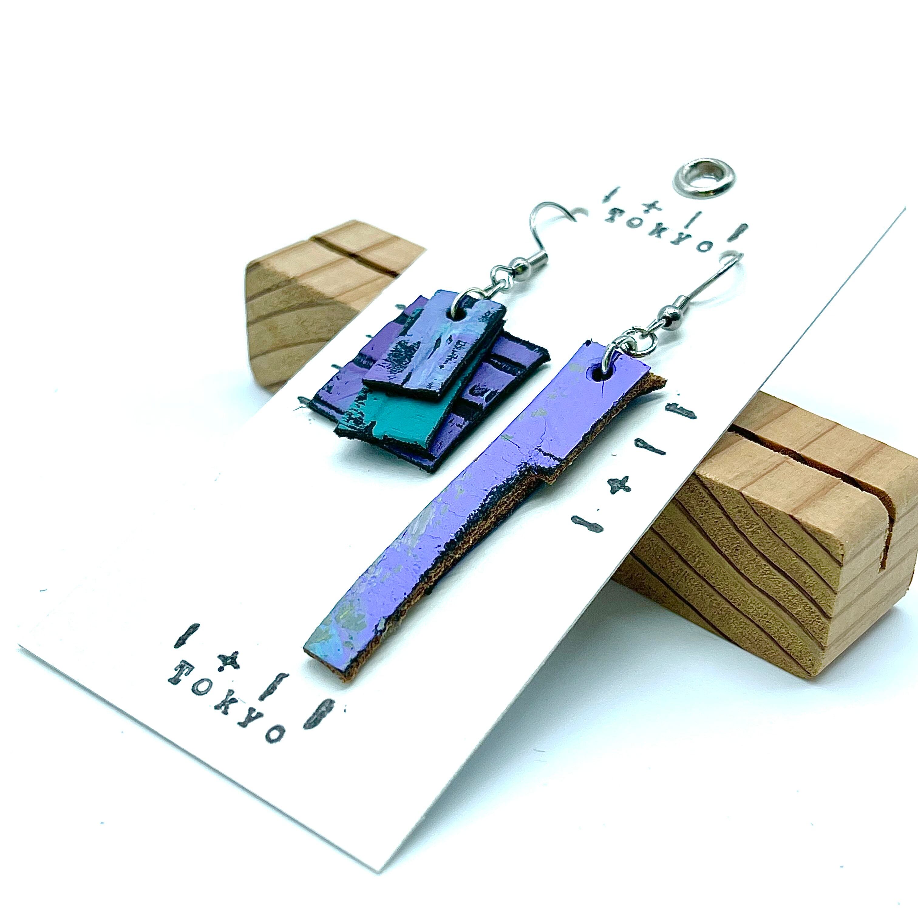 抽象画を革に描いた時の小さい部分を ピアスとして作っています