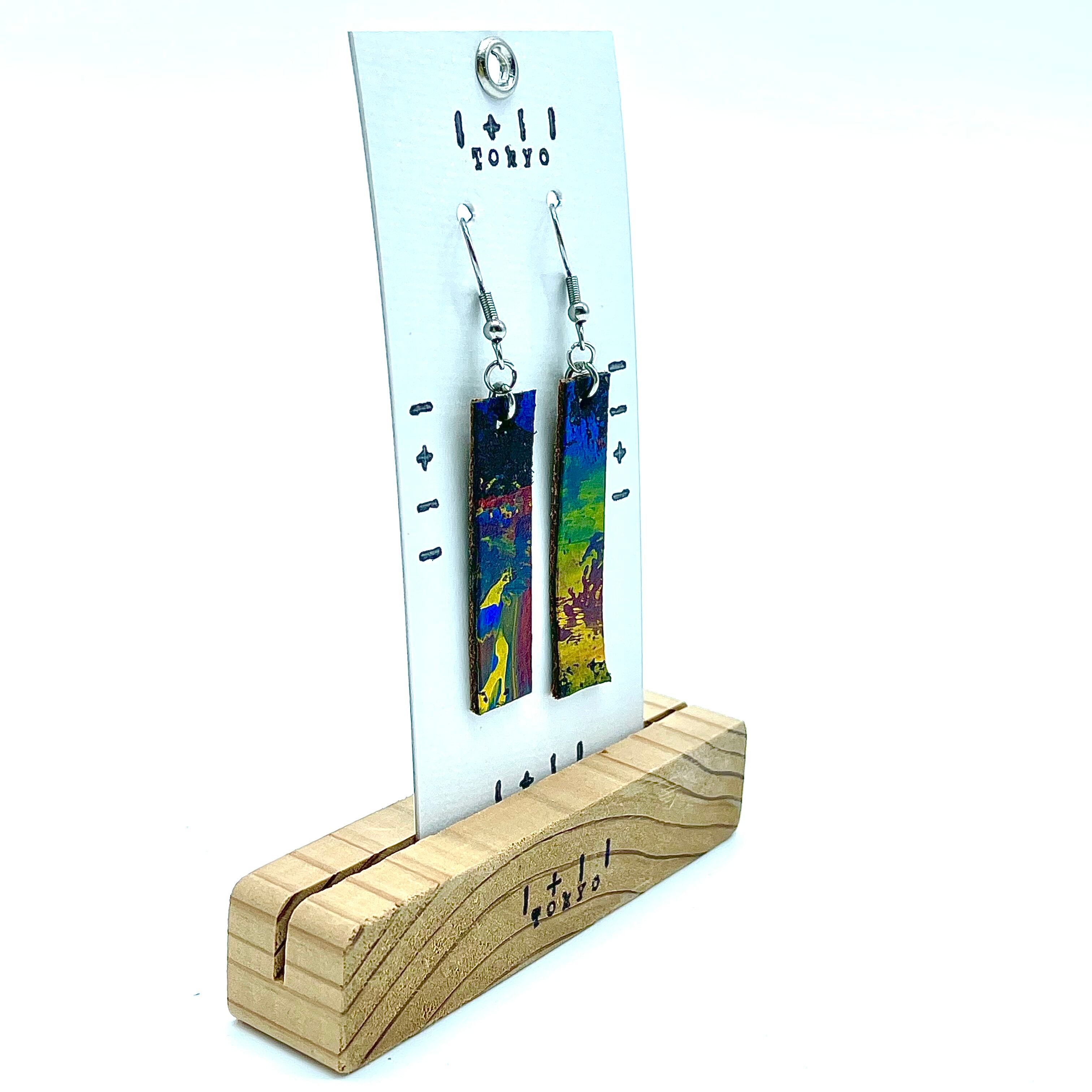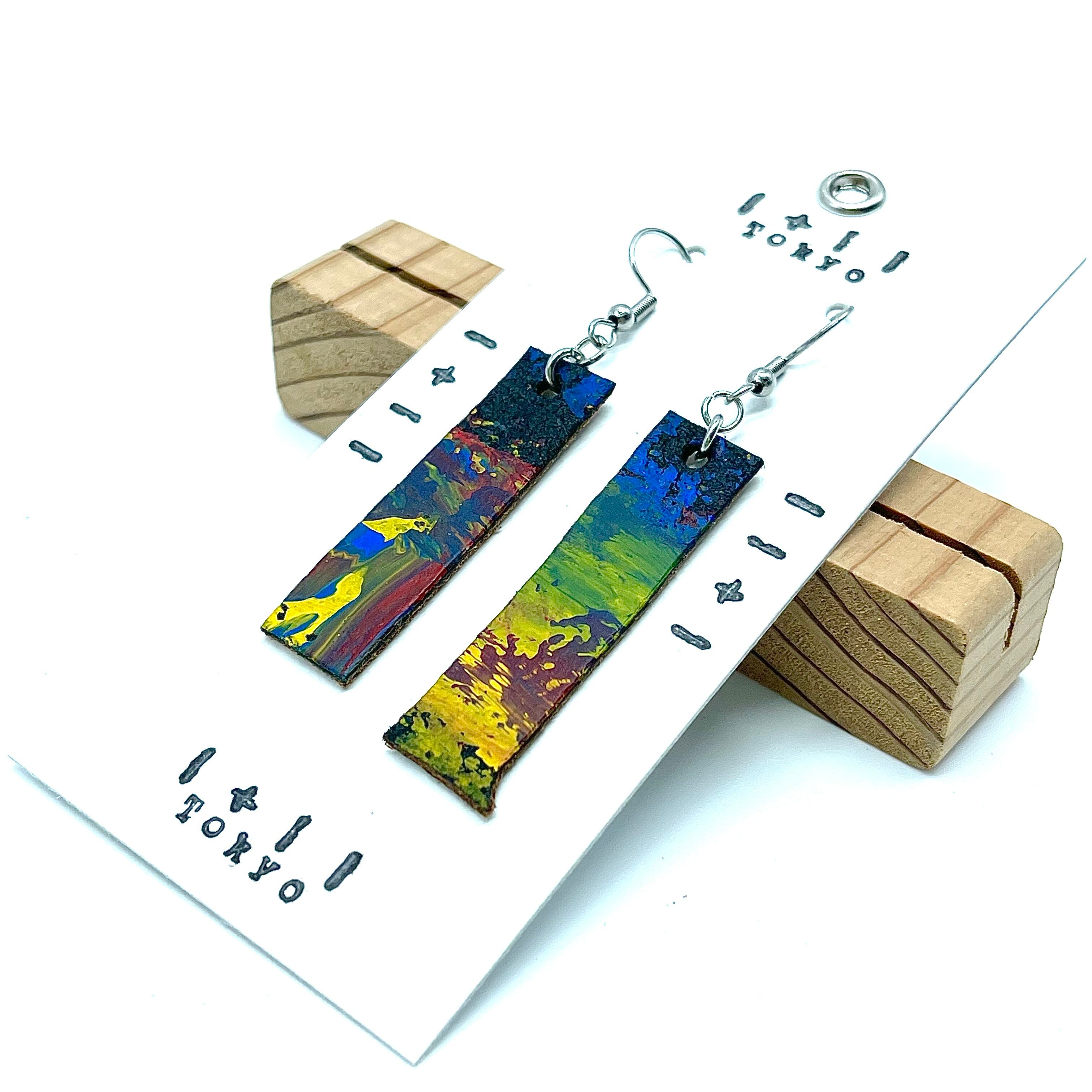 抽象画を革に描いた時の小さい部分を ピアスとして作っています