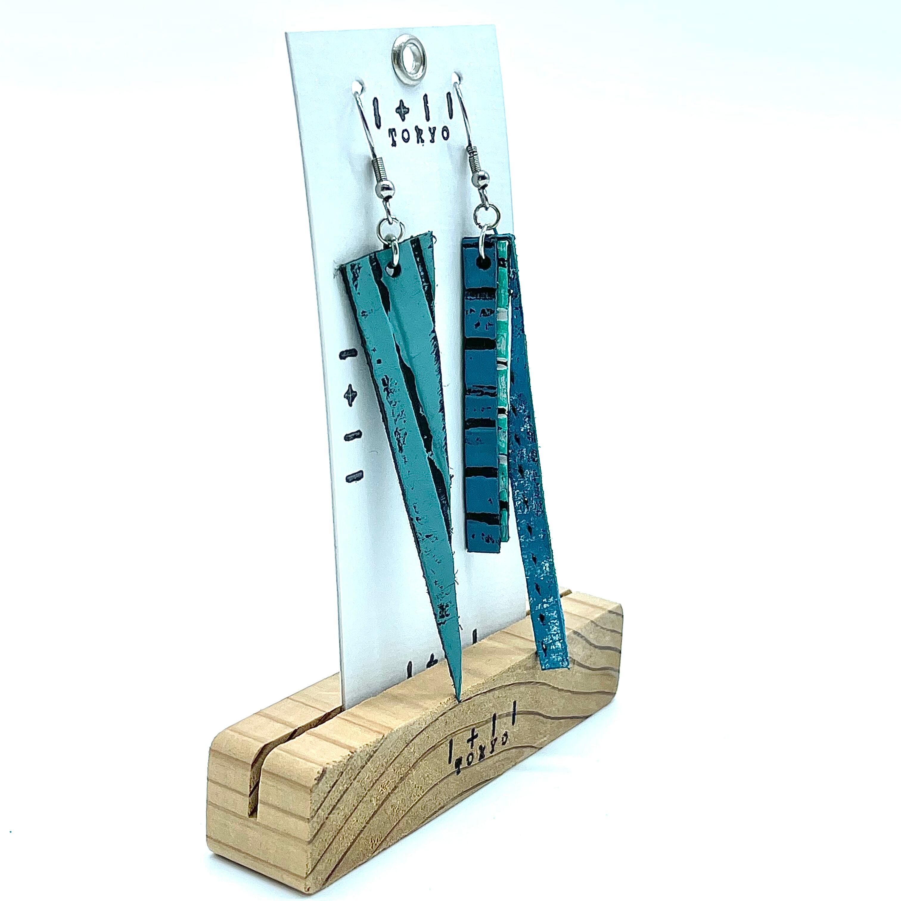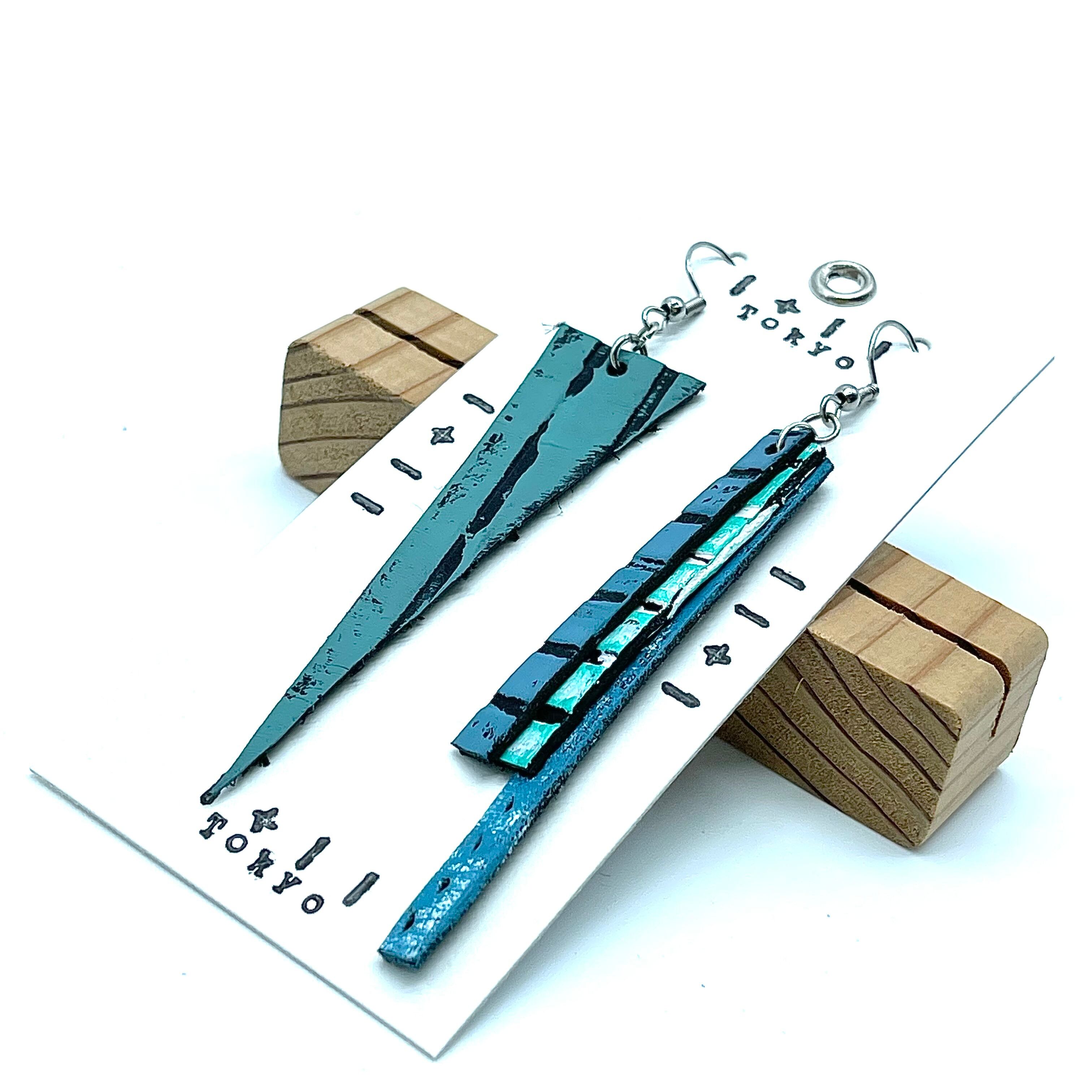 抽象画を革に描いた時の小さい部分を ピアスとして作っています