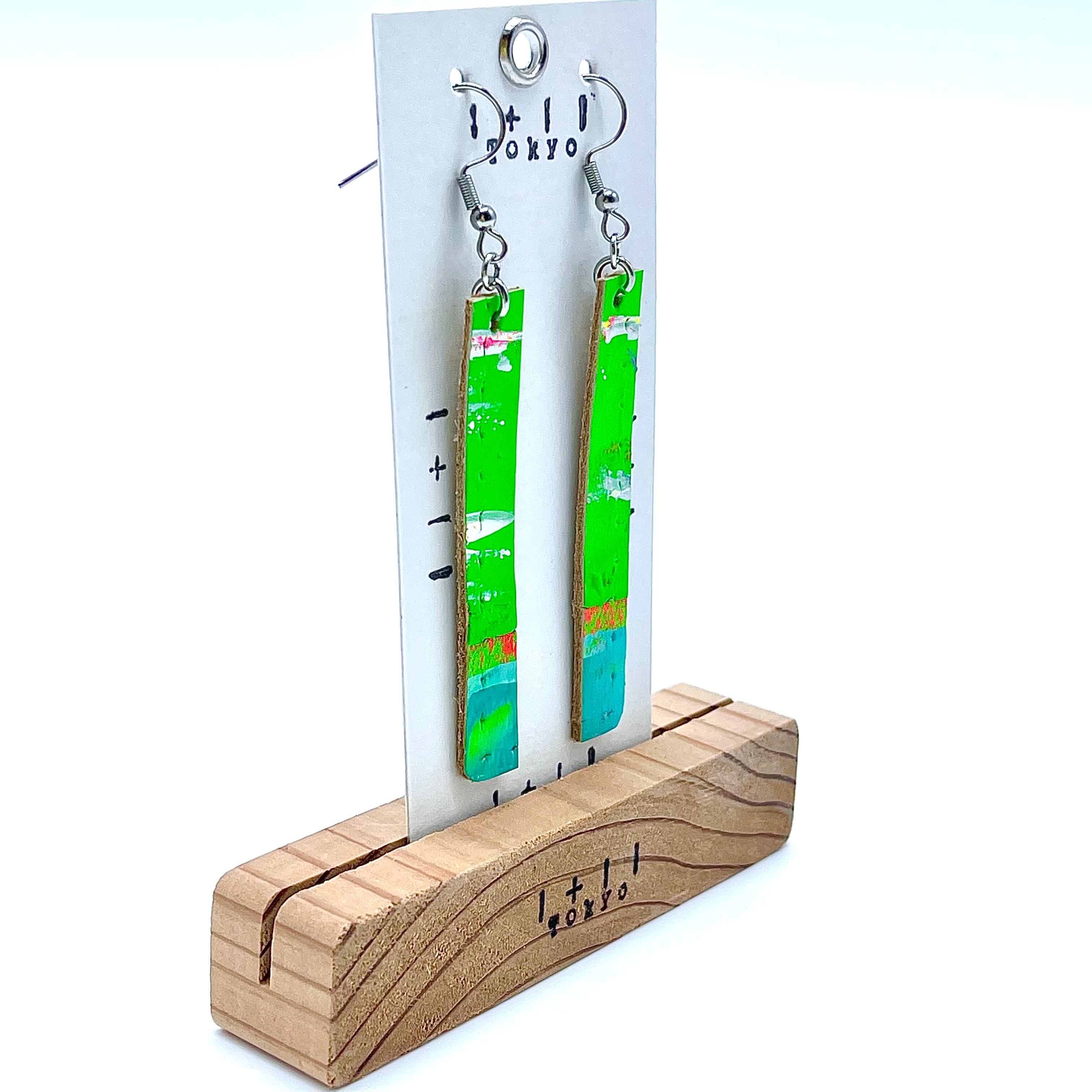 抽象画を革に描いた時の小さい部分を ピアスとして作っています