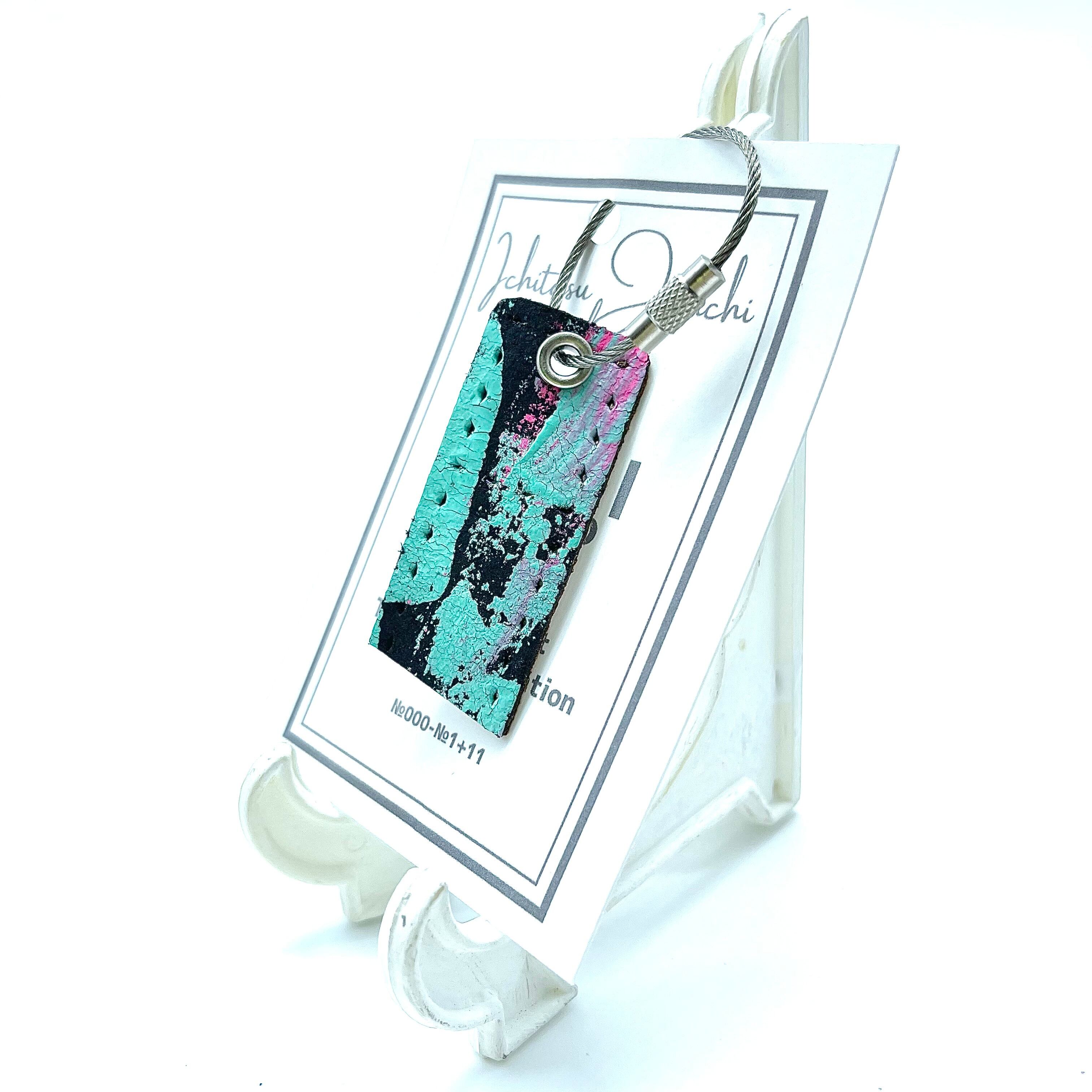 あなたが気になった大きい作品と似た抽象画ならば 小さい革キーチャームから l + l l Tokyo(いちたすじゅういち とうきょう)作品を 手に入れてみませんか