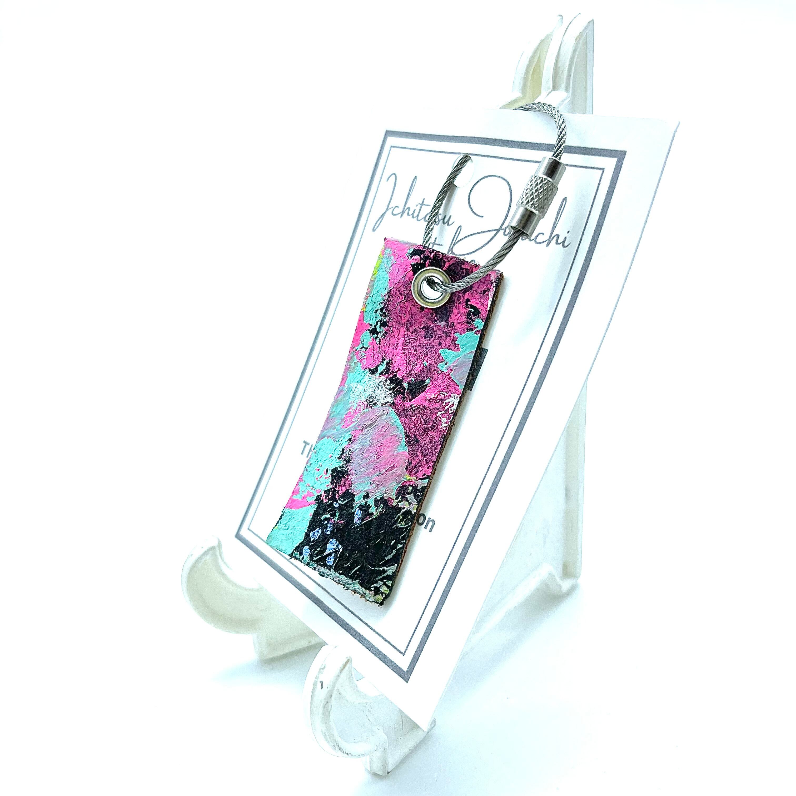 あなたが気になった大きい作品と似た抽象画ならば 小さい革キーチャームから l + l l Tokyo(いちたすじゅういち とうきょう)作品を 手に入れてみませんか