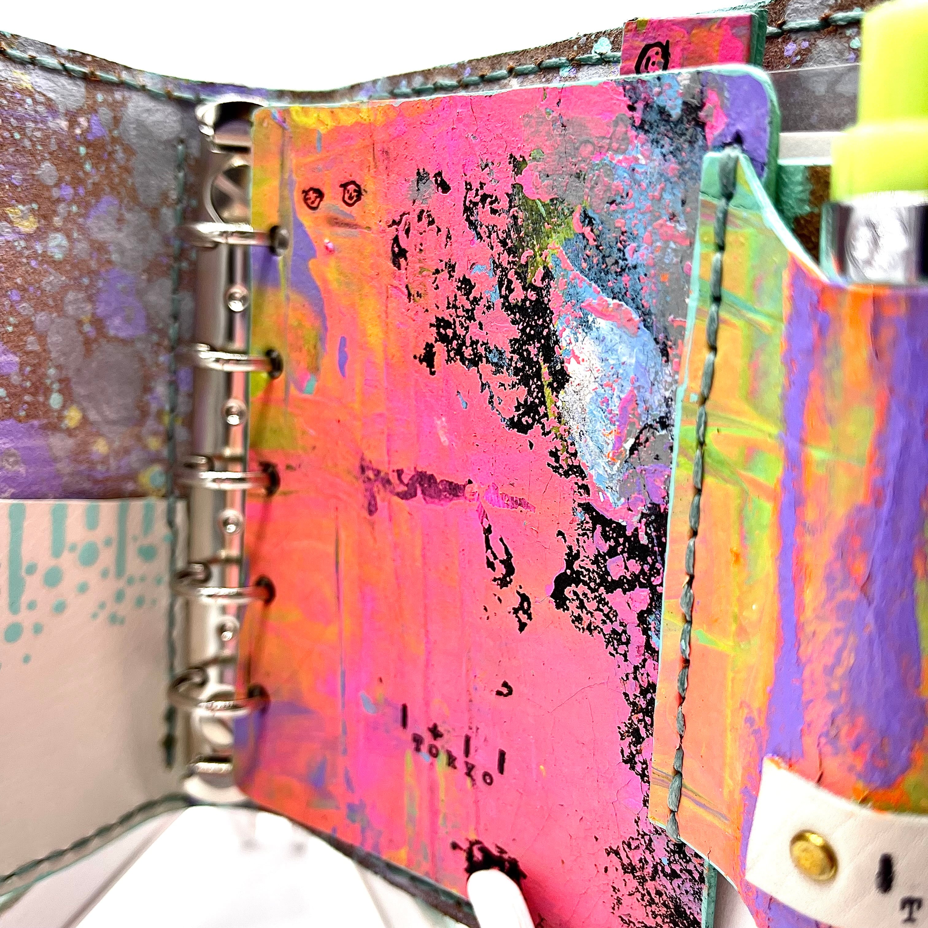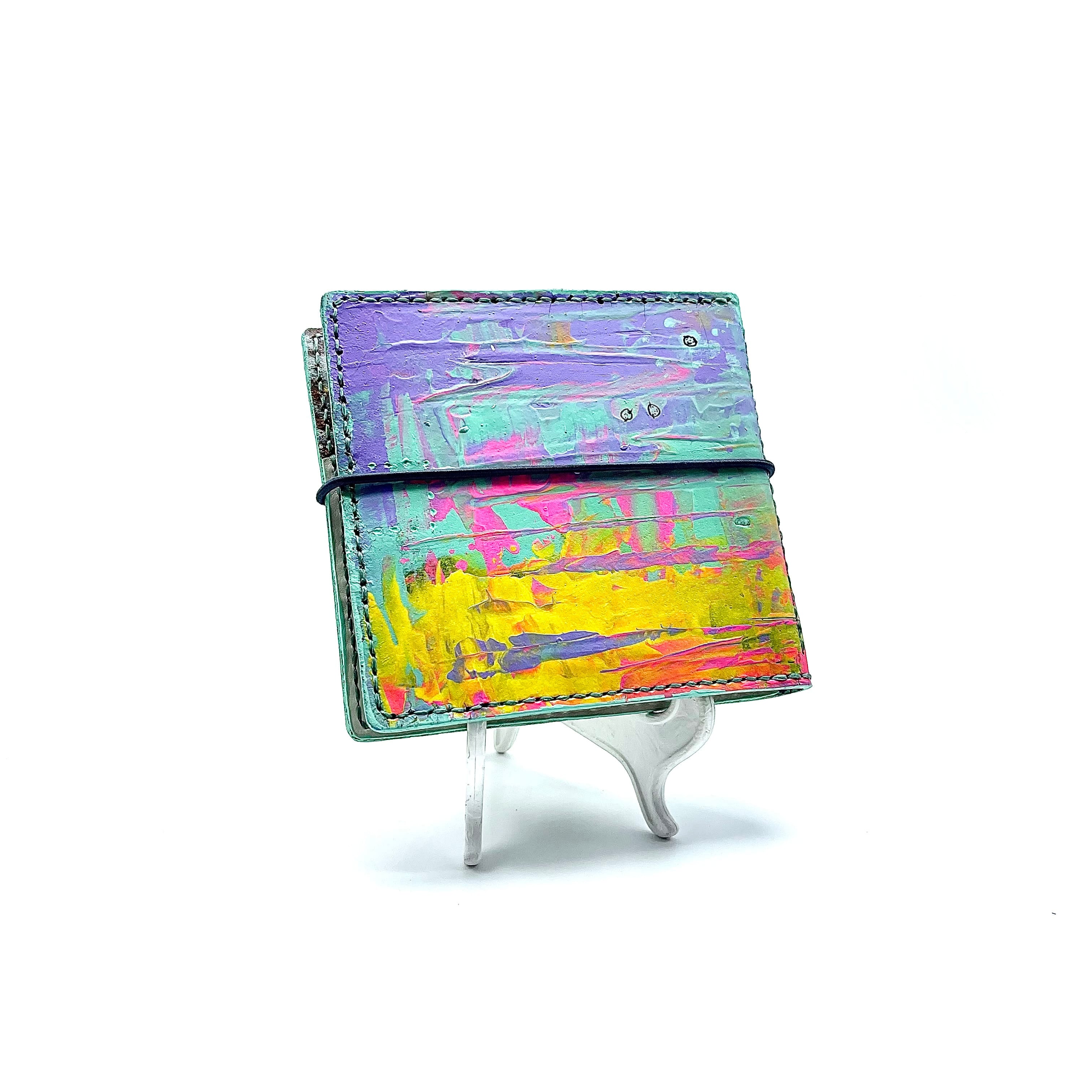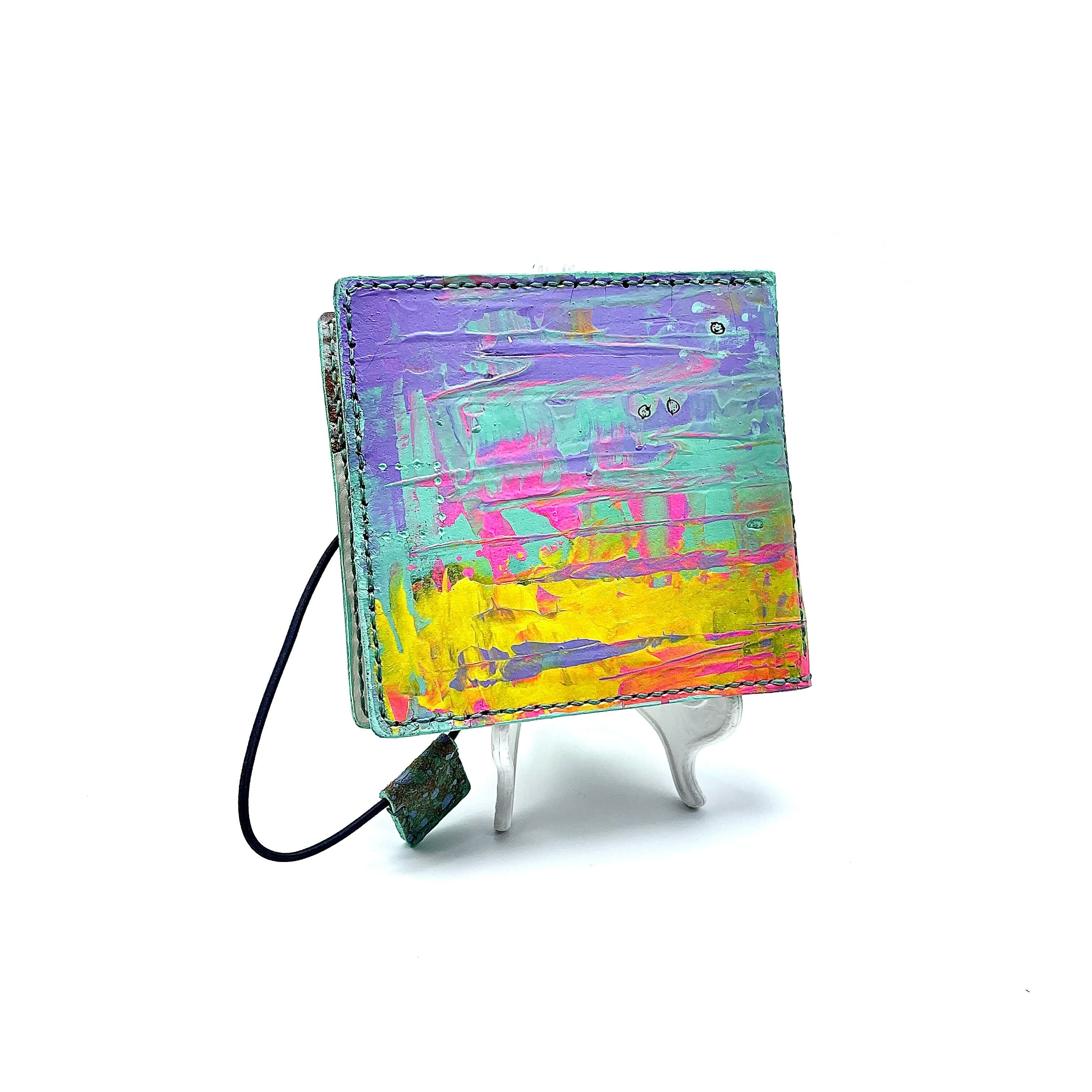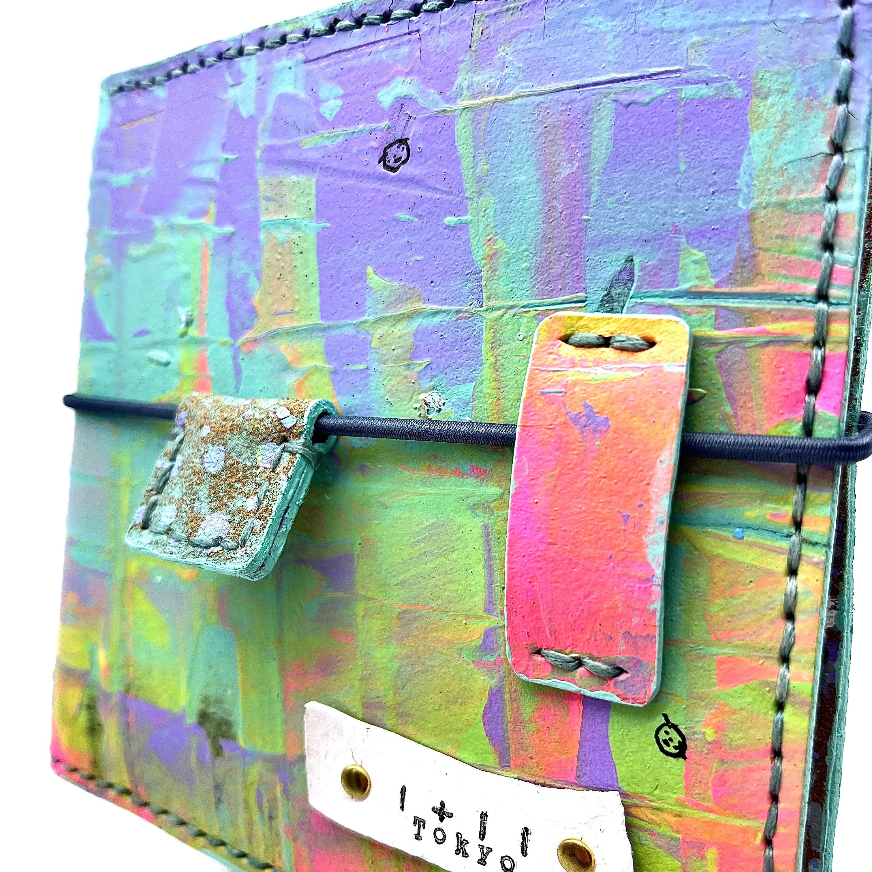 革に 抽象画をアクリル絵の具でペイントした 『抽象画を革に!シリーズ』